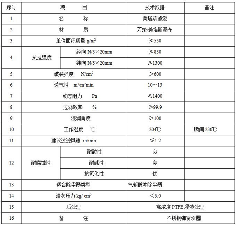 诺美克斯滤袋采用美国杜邦公司、日本帝人公司生产的纤维,与普通滤料相比,本产品还具有以下特点: